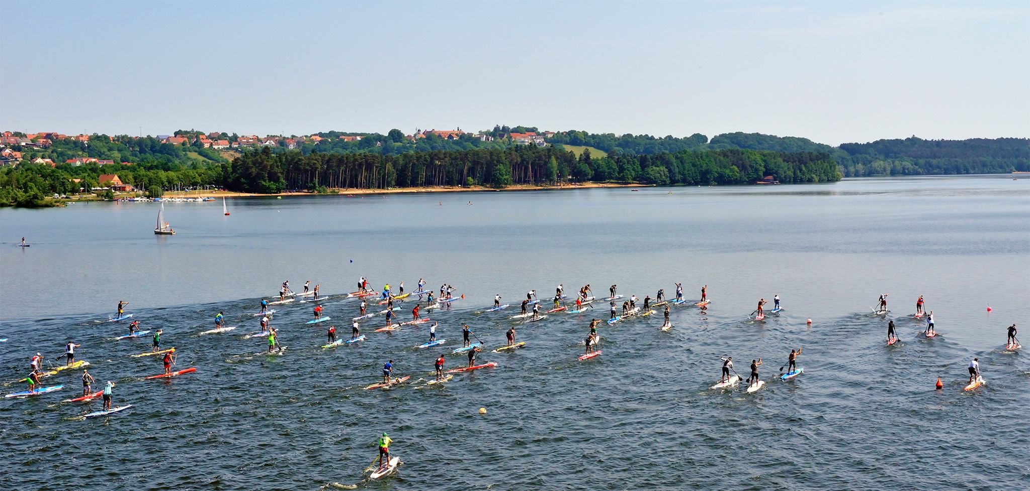 On the way back the pace started to pick up and everyone was getting more and more excited. At times we had 2 to 3 trains going and it was a nut show but I stood my ground so no one could knock me out of the train. As I got close to the dam I jumped into the front because I knew someone was going to make a move and I wanted to be ready. I turned the buoy and picked up the pace into the beach. Titouan and I hit the beach and sprinted up and over the dam straight back into the water. When we hit the water we were side by side and sprinted as hard as we could to make a gap on the rest of the train. I had my head and didn’t let Titouan leave my side. After a little bit I took a quick glance back and only Trevor and Arthur were behind us. From the dam to the finish line was 2.6km and Titouan didn’t let up for second so it was one of the longest hardest sprints I have ever done in my life. As we got close to the beach I knew I was going to have to make a move so that is exactly what I did and shifted into the next gear. I was only able to put a board length gap on him – but that was all I needed to run up the beach in first place. I was so stoked and relieved to finish the race and to have beaten a super stacked field.