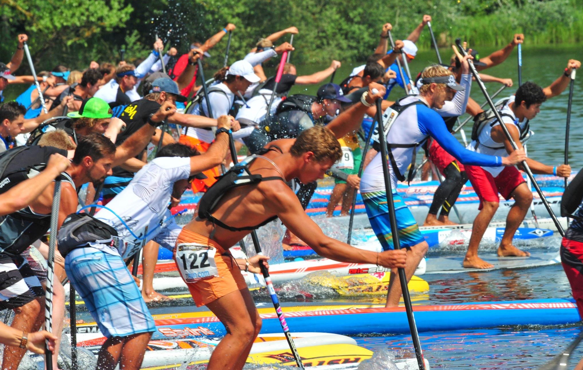 The day of the race I got a good breakfast and did my normal routine of stretching. I was in the zone and knew it was going to be a long hard day of paddling 18km, but I knew exactly what I had to do. My plan of attack was to try and take it easy so I would have extra gas in the tank for the last sprint. I got a warm up paddle in and then I lined up on the start line. I looked around and made sure I was close to my competitors that I knew would be a threat. When the horn blew I made sure to get out of the mess and into clean water.