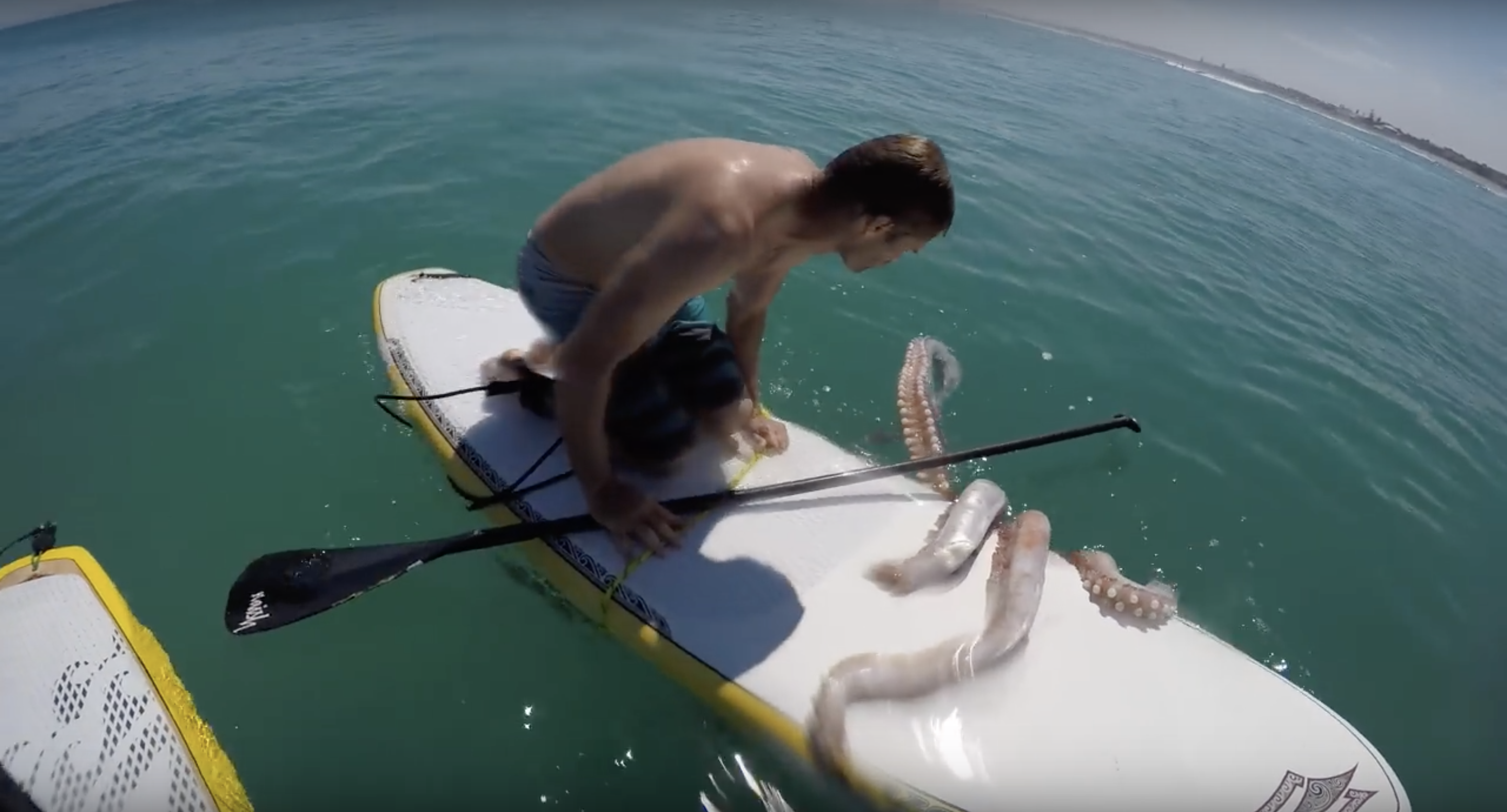 Giant squid wraps its tentacles around a paddle board!