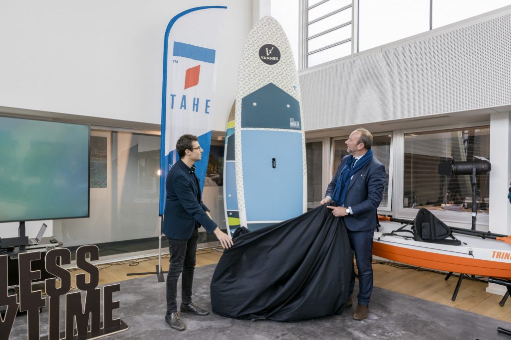 « As the Mayor of Vannes and President of the Golfe du Morbihan-Vannes authority, I’m proud of the existence of a major world player in board sports in our area for over 40 years. The 70,000 windsurf boards, surf boards, kayaks, O’pen Skiffs, wingfoils and stand up paddle boards produced here in Vannes every year by Tahe Outdoors France (formerly BIC Sport), give our area a profile in over 90 countries worldwide. The recent investment (2 M€) in the new thermoform production lines will further increase the impressive capacity achieved by the 150 employees in Vannes. I’m certain that Tahe Outdoors France will rise to all its future industrial/business challenges and I am very happy to recognise their commitment to durable, sustainable projects that fit perfectly with the values and needs of our area.»