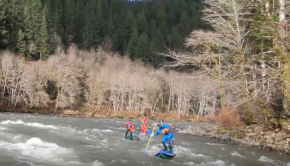 The Hala troops going for a high water first SUP descent on the Toutle river in Washington State!