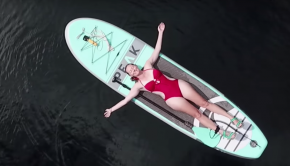 Paddleboarding inside the blue hole at Hoffman’s Cay