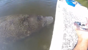 Check out this Huge Manatee getting super close to a Stand Up Paddle board fisherman.